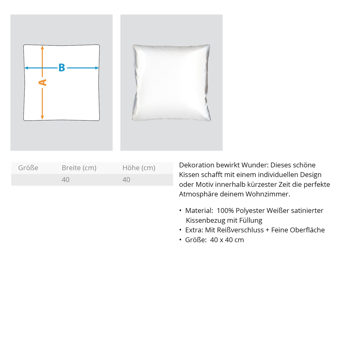 - Verarbeitung: Weißer satinierter Kissenbezug mit Füllung